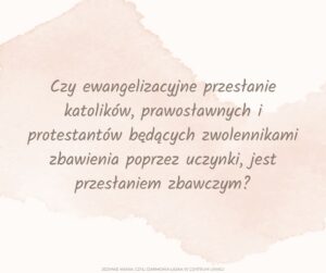 W ten sam sposób istnieją niektórzy katolicy, prawosławni i protestanci nauczający zbawienie z uczynków, którzy nie wierzą w nauki swojego kościoła. I ja nie mówiłem o ludziach, którzy nie wierzą w to, czego naucza ich kościół.