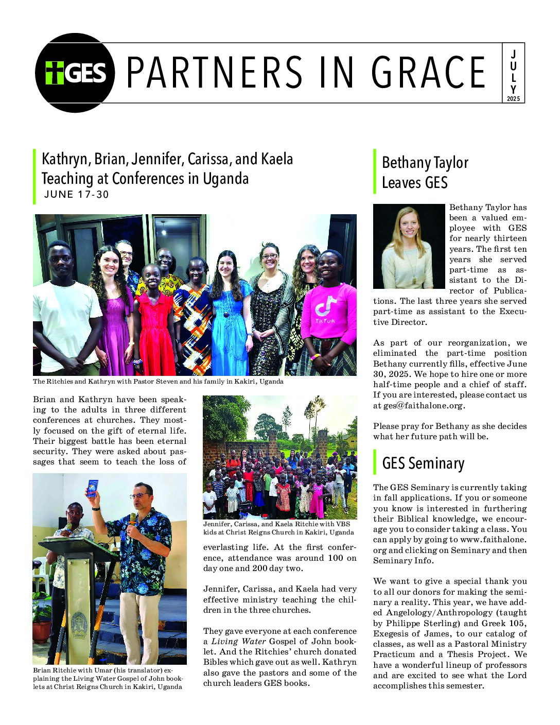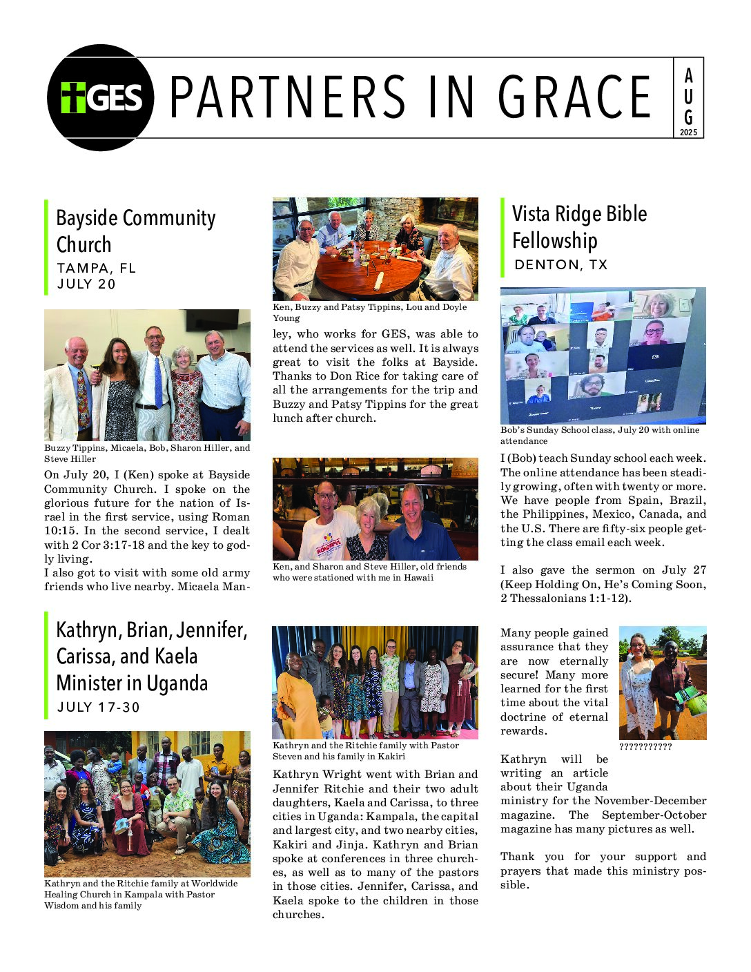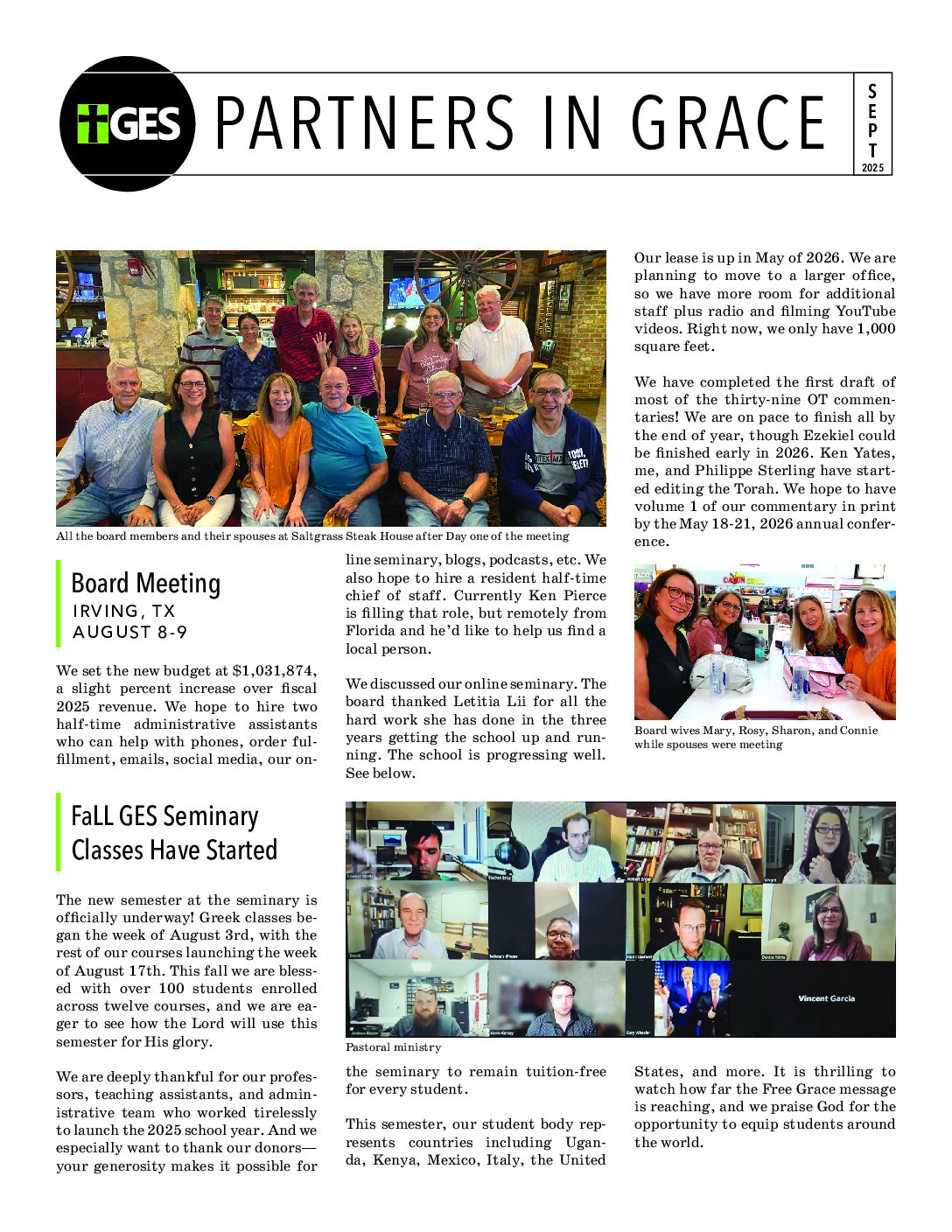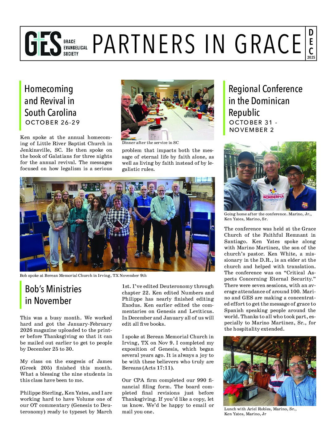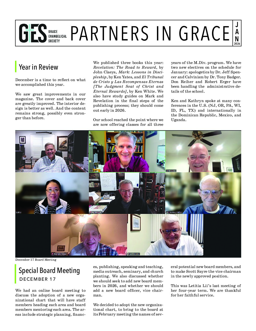 Partners in Grace is our monthly newsletter designed to recap our previous month’s ministry opportunities. If you would like to find out how you can become a partner in grace and help support the ministries of Grace Evangelical Society, please click here.