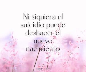 Una nota final. Los suicidios suelen ser cometidos por personas que no están en su sano juicio. Pueden tener una enfermedad mental o estar drogados en ese momento. En algunos casos puede que ni siquiera sean culpables de esa acción porque estaban literalmente dementes en ese momento. Nosotros no somos Dios. El Señor Jesús juzgará a cada creyente en el Tribunal de Cristo (el Bema). Si tienes un ser querido creyente que se quitó la vida, regocíjate de que ahora está con el Señor. Y date cuenta de que habrá mucha gracia y mucha comprensión en el Bema. Todos necesitaremos mucha gracia y comprensión en el Bema, ¿no crees?