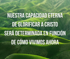 Pero si las Escrituras enseñan que la manera en que vivimos ahora determina nuestra capacidad de glorificar a Cristo—y es lo que hacen—entonces tengo que alinear mi pensamiento con las Escrituras.