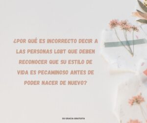 En segundo lugar, decirles a las personas LGBT que deben abandonar su estilo de vida pecaminoso para ser salvos es sumamente erróneo i. Las personas no pueden comprar su propia salvación. El Señor Jesús pagó el precio completo con su obra terminada. No podemos añadir nada a lo que Él hizo en la cruz. Juan 3:16 no dice nada acerca de la necesidad de apartarse de los pecados para tener vida eterna.