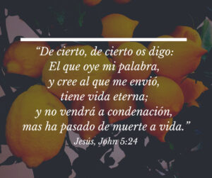 “De cierto, de cierto os digo: El que oye mi palabra, y cree al que me envió, tiene vida eterna; y no vendrá a condenación, mas ha pasado de muerte a vida” (Juan 5:24).