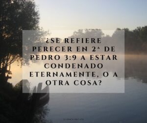 El problema con este pensamiento es que la palabra perecer en 2ª de Pedro 3:9 no se refiere a la condenación eterna. Su único otro uso en 2ª de Pedro es 2ª de Pedro 3:6. Aquí perecer se refiere claramente no a la condenación eterna, sino a la muerte física: “[por la palabra de Dios] el mundo que entonces existía [en tiempos de Noé] pereció anegado en agua”. Tres versículos después, Pedro sigue teniendo el mismo sentido en mente. “El Señor no retarda su promesa” se refiere a la prometida Segunda Venida de Cristo (2ª de Pedro 3:4). “ no queriendo que ninguno perezca” se refiere a que Dios no quiere que nadie, y mucho menos miles de millones de personas, mueran prematuramente, que es lo que ocurrirá durante la Tribulación, los siete años que preceden a la Segunda Venida de Jesús. El arrepentimiento, es decir, el apartarse de los pecados, previene la muerte de miles de millones de personas durante la Tribulación y, en última instancia, la destrucción de los cielos y la tierra después del Milenio (2ª de Pedro 3:10-12).